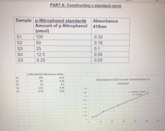 Follow this process to create a standard curve with your standards and then use that standard curve to analyze your samples. To use a spectrophotometer to measure the increase in p-nitrophenol produced as a function of time for a known concentration of enzyme. Add 02 ml of the appropriately diluted enzyme solution and start a stopwatch.